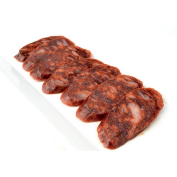 Delicioso chorizo elaborado de forma artesanal, con un acertado equilibrio entre magro y grasa dominando noblemente el primero. En definitiva, un \Gran Reserva" para los que les gusta el chorizo de toda la vida.Loncheado y envasado al vacío en sobres individuales.
