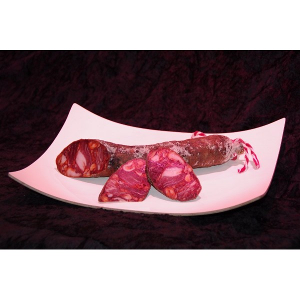 El chorizo ibérico se elabora con carnes de primera de cerdo ibérico, condimentado con sal, orégano, ajo y pimentón. Una vez elaborado se cura en secaderos naturales durante al menos 4 meses, hasta alcanzar el aroma y sabor que lo caracteriza. Loncheado y envasado al vacío en sobres individuales.
